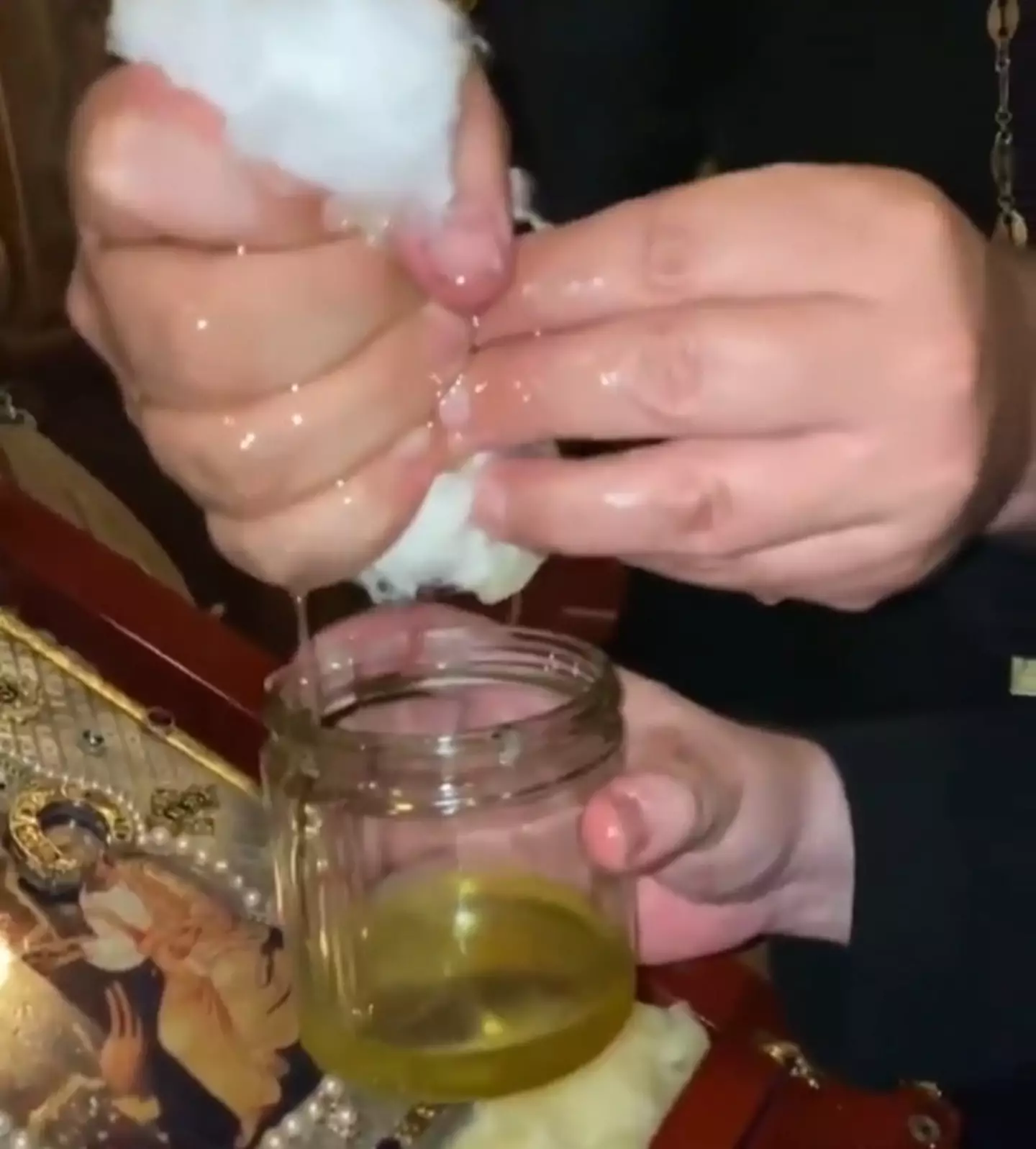 What followed was extraordinary: a bead of fragrant oil appearing on the knee of baby Jesus, identified as myrrh, a resin mentioned in the Bible, began to seep from the print inexplicably.
