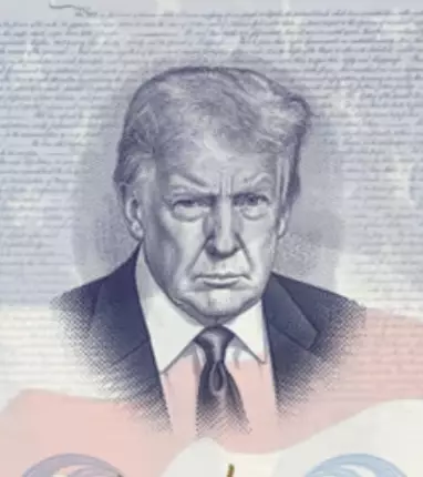 A sample image first shared by Fox News appears to place the President’s likeness alongside text from the Declaration of Independence, and includes his signature in gold beneath the design.
