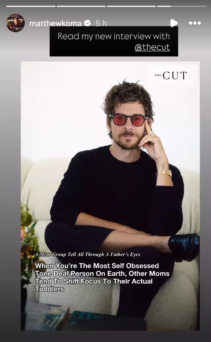 Duff’s husband, Matthew Koma, then weighed in on the situation with a humorous twist. He shared a doctored image on Instagram featuring himself in the cover photo of The Cut’s article on Tisdale. His caption read: “A Mom Group Tell All Through A Father’s Eyes. When You’re The Most Self Obsessed Tone Deaf Person On Earth, Other Moms Tend To Shift Focus To Their Actual Toddlers.” He concluded with, “Read my interview with @thecut.”