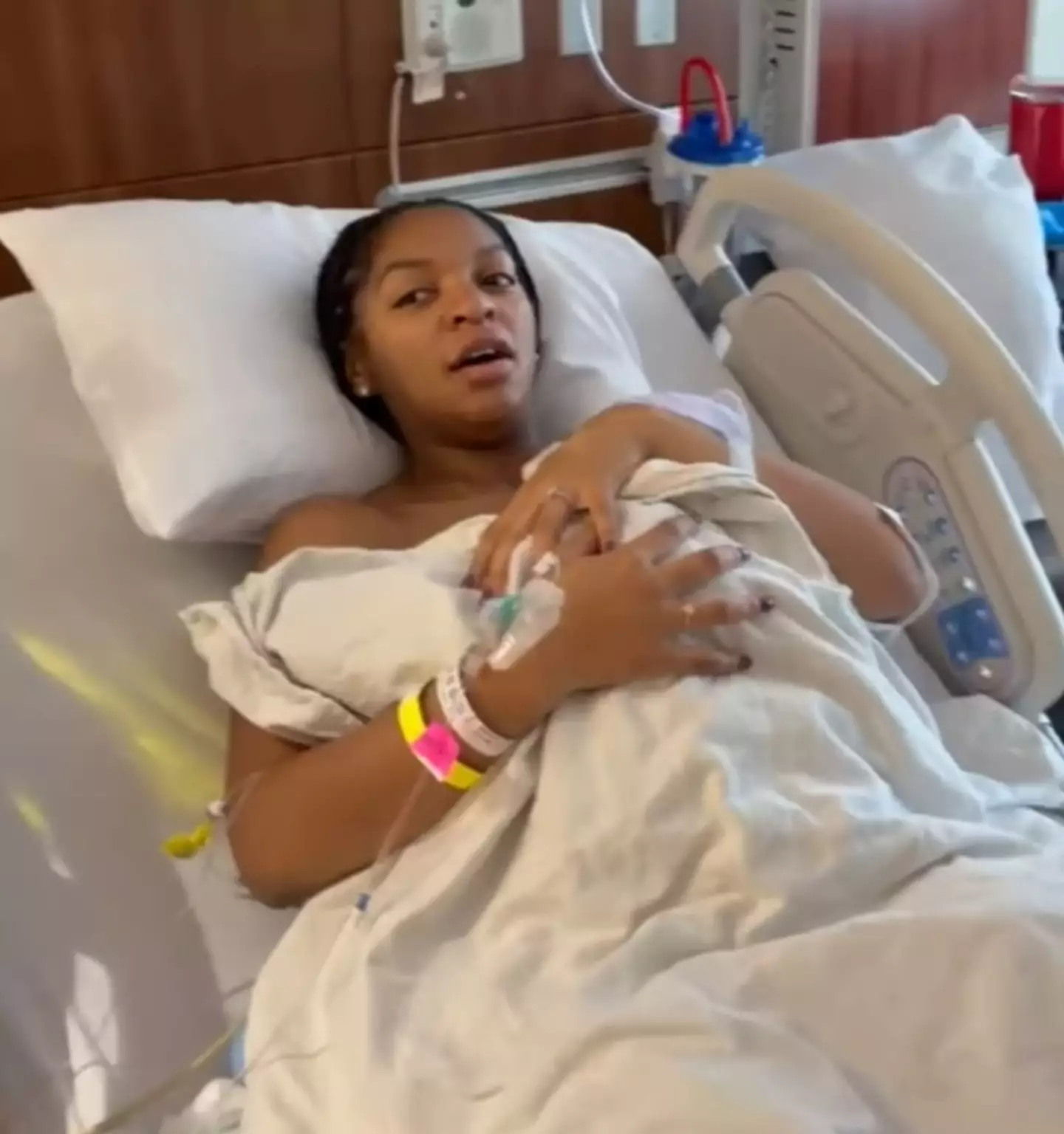 Shortly after, the nurses presented Challis with her newborn, who was clad in a tiny onesie.