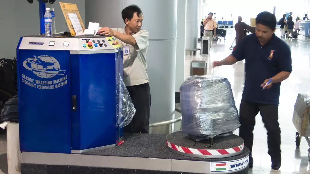 One security measure commonly spotted in airports worldwide is passengers wrapping their cases in layers of plastic film, with many terminals even offering the service to anxious travelers before they head to check-in.