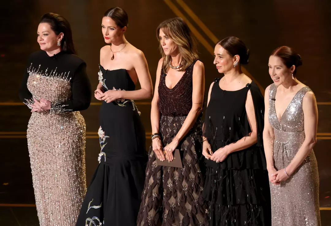 Kristen Wiig, Maya Rudolph, Rose Byrne, Melissa McCarthy and Ellie Kemper appeared together during the ceremony to present an award. The moment doubled as a mini Bridesmaids reunion, especially with Byrne also enjoying a big night thanks to her Best Actress nomination for the 2025 film If I Had Legs I’d Kick You.
