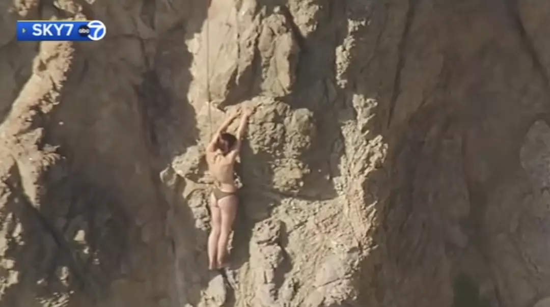 From there, she held on tightly, stranded on the rock in Kelly’s Cove roughly 70 feet below the top of the cliff. Wearing only a swimsuit, she waited, hoping someone passing by might notice her and call for help.